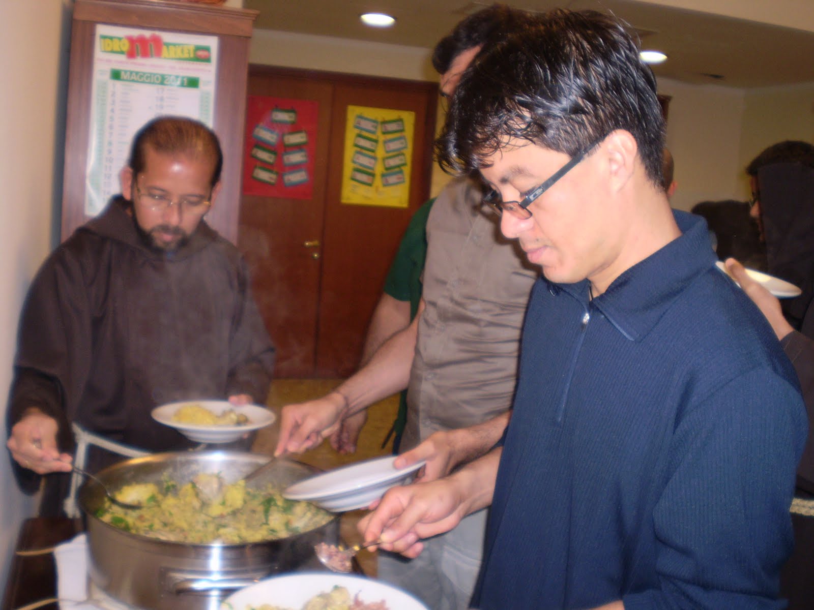 Padre Mariosvaldo serve Fra Lucas, ecônomo do Colégio.
